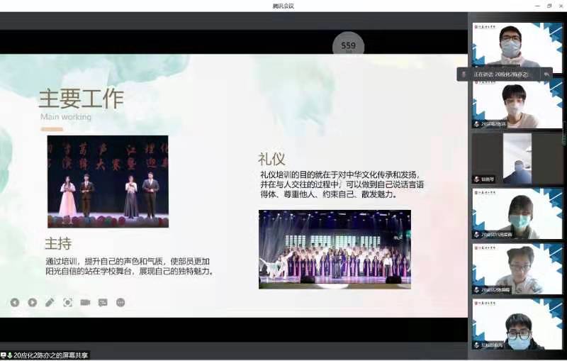 为贯彻落实学联学生会组织改革方案,建设完善学生会管理制度,加强学生会组织建设,推动学生会工作科学化、规范化、精细化,4月2日上午我院通过腾讯会议召开化学与环境工程学院学生会述职评议会议。院分团委书记谈晓琴、21级辅导员牛志刚、学生会主席团及各部门正副部长参加了本次会议。