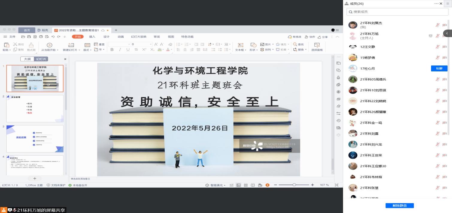 为宣传大学生资助政策,强化资助育人效果,同时增强学生的安全防范意识,切实加强学院安全教育与管理,构建平安和谐校园,5月24日至26日期间,学院各班级陆续召开“资助诚信 安全至上”主题班会。首先,班长通报分析近期校内外各类型安全相关事件,并就电信诈骗、人身财产安全等方面进行警示教育。然后,播放安全教育视频,各种电信诈骗案例帮助同学们更加直观认识到诈骗手段的诱惑性、隐蔽性和简易性等特点。最后,介绍了国家资助政策体系的内容、意义、做法和经验等,并就奖助学金、助学贷款等资助政策为同学们进行了详细解读。