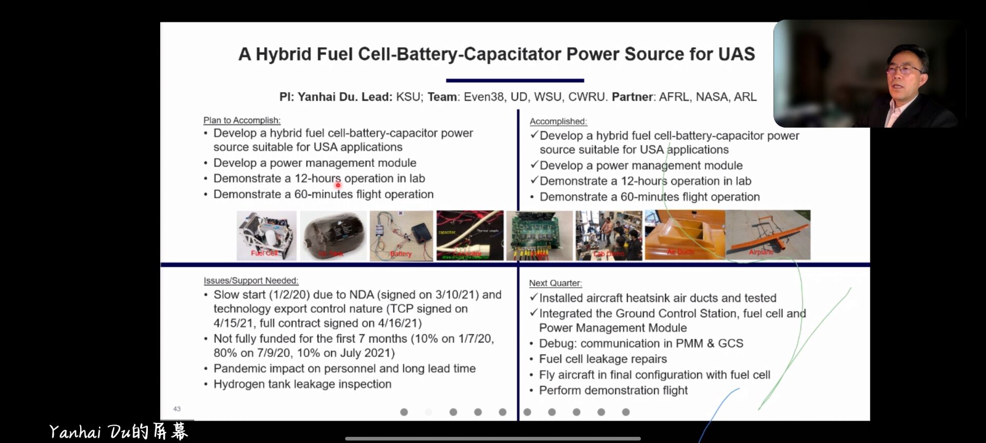 杜衍海教授是材料学家,也是固体氧化物燃料电池领域国际公认的学者,主要研究方向是可持续能源技术、燃料电池和金属3D打印。讲座中,杜衍海教授从实现碳中和的原因、实现现碳中和的方法和策略展开,以用于无人机的混合燃料电池的研发计划、研发过程、实验结果为例为大家进行详细讲解。