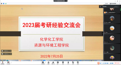 为营造优良学风,帮助2019级考研学生更深入了解备考技巧,做好考研路上的“传帮带”,7月25日晚,我院举办“研途砥砺,筑梦未来”梦想公开课暨2023届考研经验交流会,化学化工学院党总支副书记杨惠、资源与环境工程学院党总支副书记杨小兵、各年级辅导员和19级考研意向学生参加了此次会议。