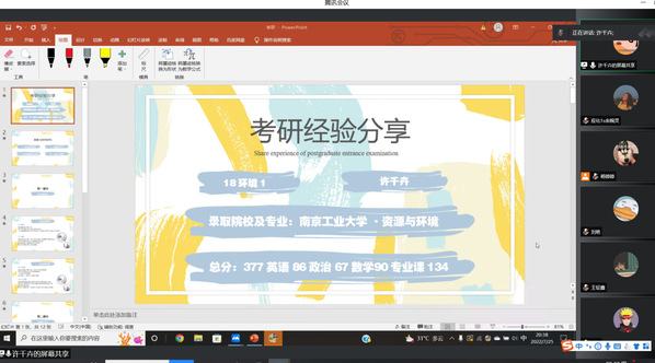 本次经验交流会邀请了4名成功上岸的2018级学生分享各自的考研经验和心路历程。重点讲述从各科目复习方法、时间规划、课程平衡和备考过程中身心状态调整等方面的技巧策略,并推荐了一系列复习资料和考研网课。在自由问答环节,同学们踊跃发言,积极提问,主讲学生耐心细致地为同学们解疑答惑。