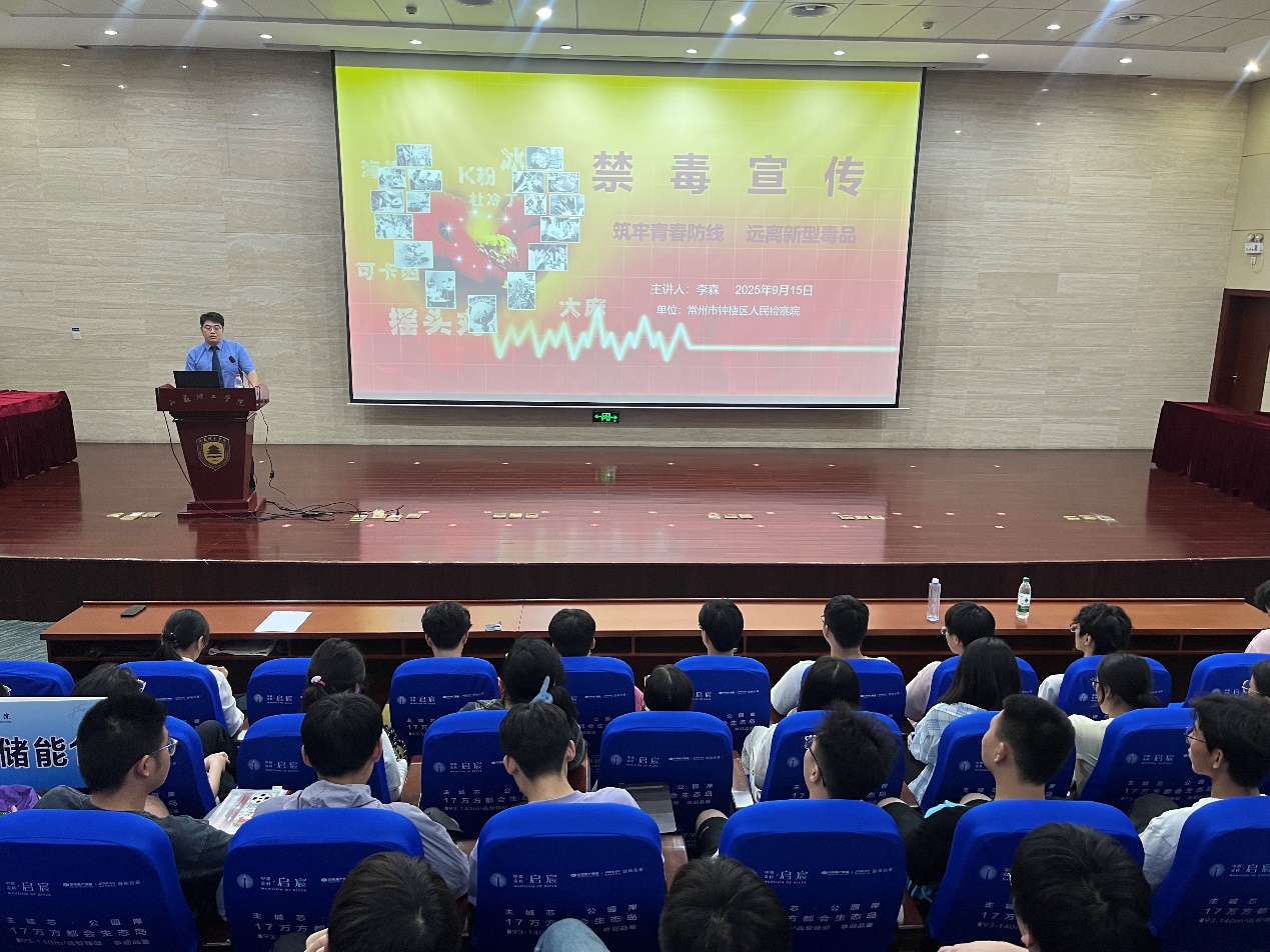 9月15日,我院2025级新生专业教育暨“开学第一课”在图书馆北报告厅举行,俄罗斯自然科学院院士周全法教授、常州市钟楼区人民检察院李森检察官受邀参加活动。学院党委书记吉红、全体辅导员、新生班主任共同迎接来自五湖四海的318位25级新生。学院党委副书记凌诚主持活动。本次活动通过禁毒教育、精神传承与专业认知三大环节,为新生扣好大学生涯的“第一粒扣子”。