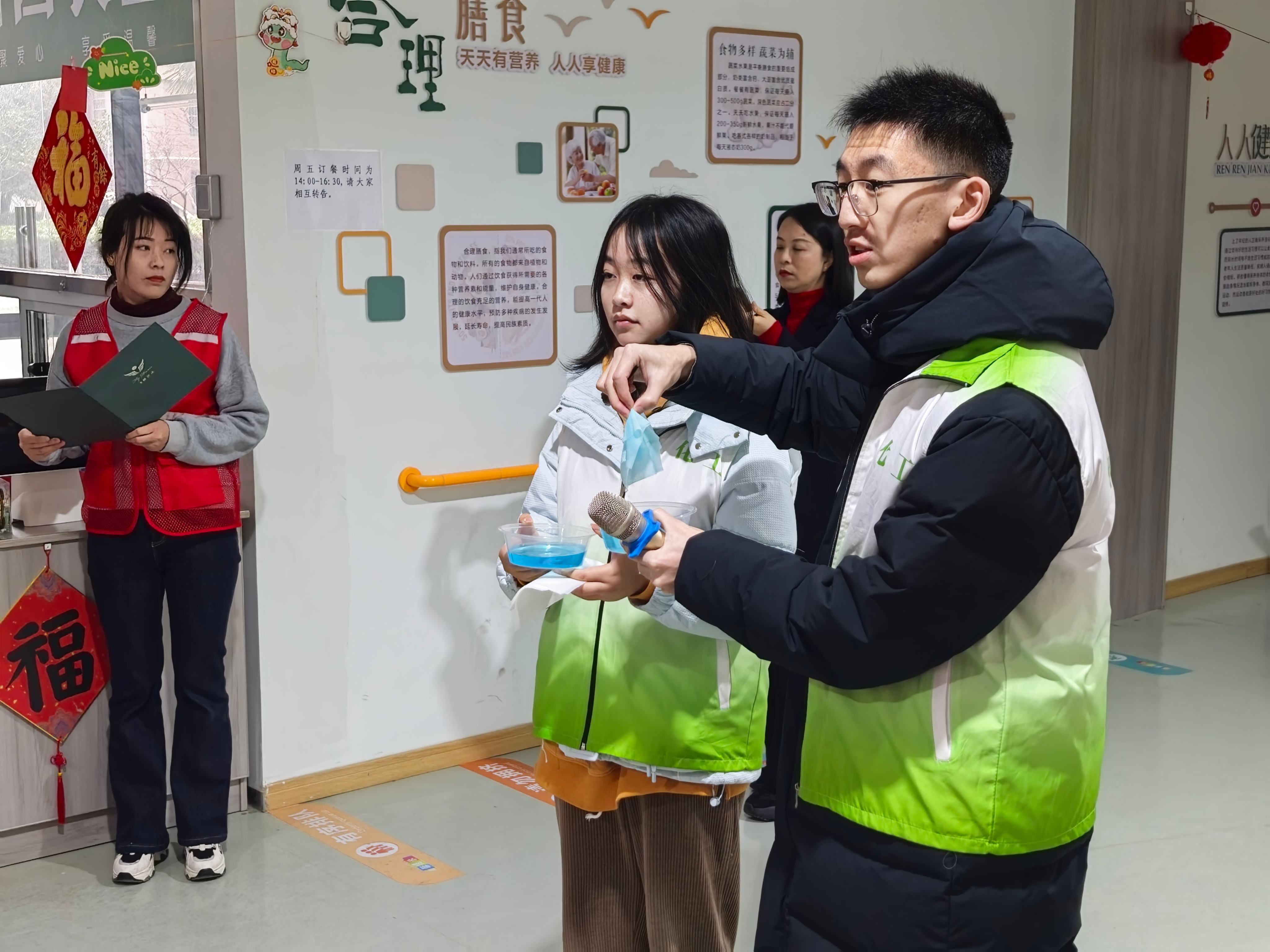 在泰盈社区,我院学生志愿者积极参与社区元宵节活动的筹备与服务。他们协助社区工作人员布置活动现场、维持秩序,为居民营造温馨有序的节日氛围。同时,志愿者们还主动帮助老年人完成健康普测,参与义务剪发等便民服务,用实际行动传递温暖与关爱。