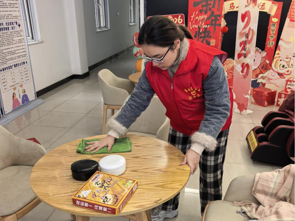 美化家园,躬身实践。25应化1班施旭佳参与社区环境卫生整理,拖地、擦拭桌椅、清洁窗户,让社区活动室焕然一新。“看似简单的体力劳动,让我体会到基层工作的不易,更理解了志愿精神的内涵。”