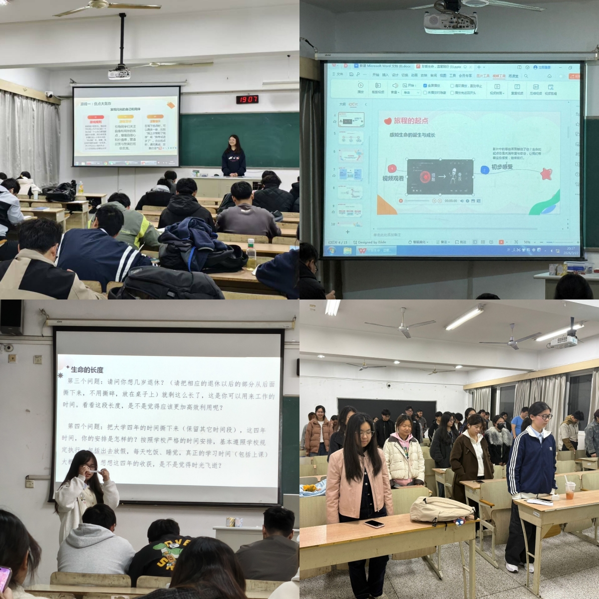 大一各班级以“珍爱生命,温暖同行”为主题,结合实际,灵活选择活动开展。班会活动以体验式教育为载体,让学生在动手操作与情感触动中重新审视生命的意义与时间的价值,有效增强了学生的生命意识与时间管理意识,班级凝聚力与互助氛围也得到进一步提升。